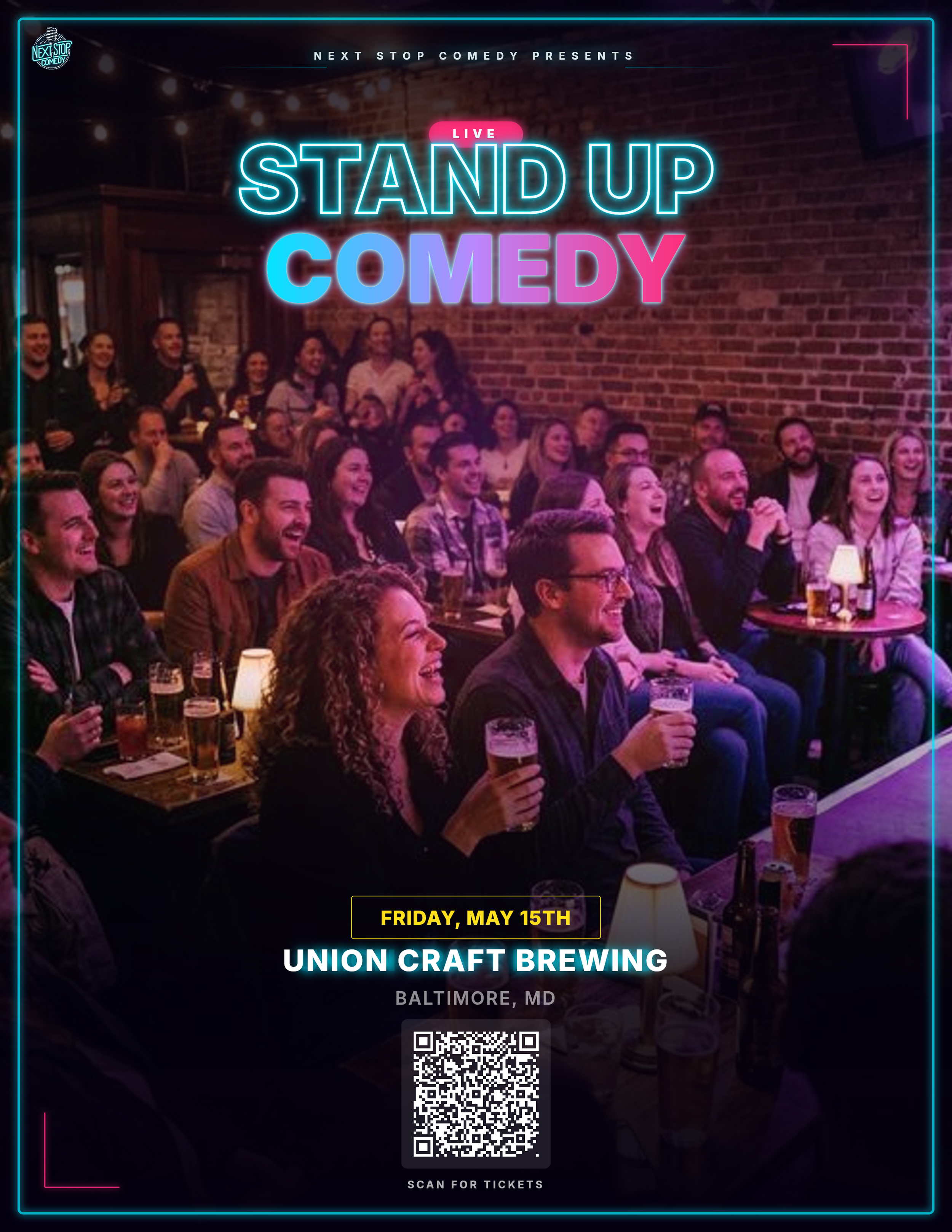 Next Stop Comedy brings the best comedians, with new lineups every time, straight to your neighborhood for an unforgettable night of laughter! Our shows feature top-tier talent from across the country, delivering high-energy performances in intimate, local venues. Whether you need an exciting date night, you're a die-hard comedy fan, or you're just looking for a fun night out, Next Stop Comedy guarantees big laughs, great vibes, and an experience you won't want to miss.